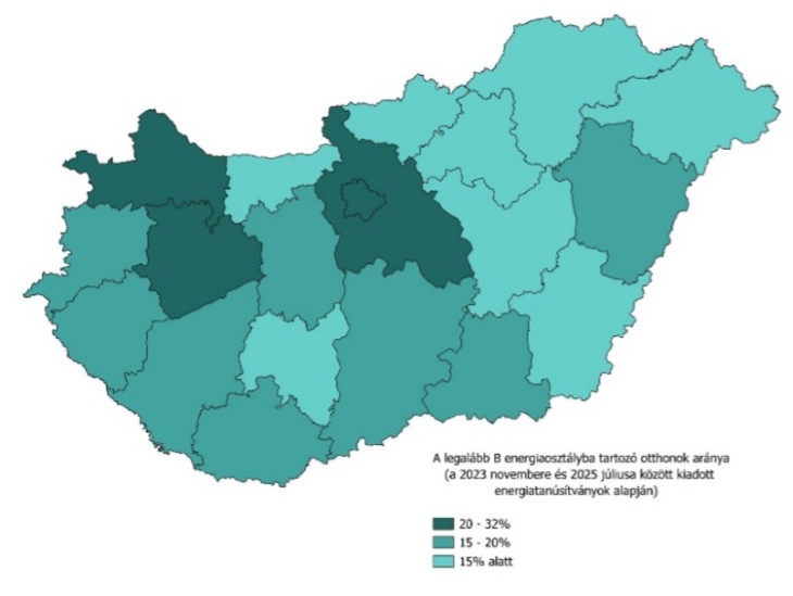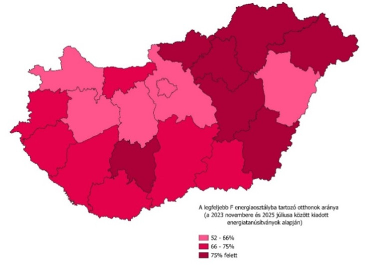 A legújabb energetikai osztályozás szerint, 2023 novembere és 2025 júliusa között kiadott tanúsítványok alapján az értékelt lakások egyharmada a két legrosszabb, H és I kategóriába tartozott, a G–I osztályú (energiapazarló, felújítandó épületszerkezetű) ingatlanok együttes aránya pedig 44 százalék volt. Ezzel szemben a legalább A energiaosztályú, vagyis a mostani új ingatlanokkal szemben elvárt szintet teljesítő lakások részesedése mindössze 14 százalékot ért el, de a legalább B, vagyis a korszerű ingatlanok aránya is csak 18 százalékot tett ki.