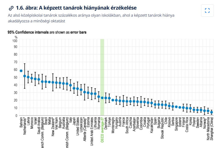 A tanulmány rámutat: egyre aggasztóbb a képzett tanárok hiánya a világ különböző oktatási rendszereiben. Hazánk ebből a szempontból a középmezőnyben végzett, bár Totyik Tamás, a Pedagógusok Szakszervezetének elnöke szerint még mindig 16 ezer pedagógus hiányzik a magyar oktatási rendszerből.